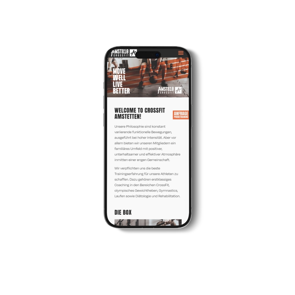 Die Webseite des Fitnessstudios CrossFit Amstetten dient als umfassende Informationsquelle für potenzielle und bestehende Mitglieder. Das Ziel des Projekts ist es, eine interaktive Plattform zu schaffen, die über die Philosophie des Studios, das vielfältige Kursangebot sowie die Qualifikationen der Trainer ausführlich informiert. Die Seite beschreiben die verschiedenen Trainingsprogramme wie CrossFit, Foundations, Open Gym, Personal Training, Gymnastics, Legends und Weightlifting detailliert.